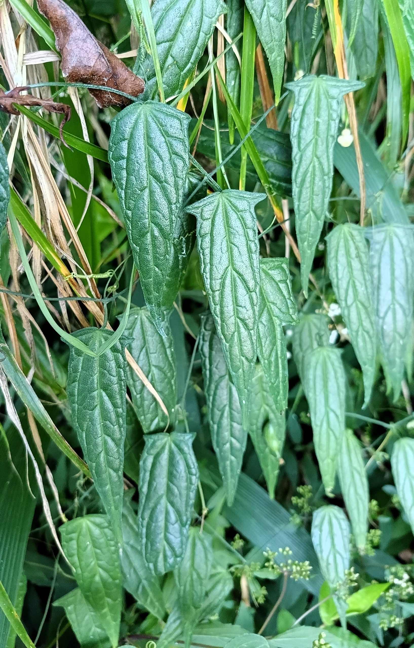 Liane endémique du bassin versant de Taloy Sur, Zehneria scaberrima, portant de petits fruits comestibles rétrécis au milieu. Crédit : Ulysses Ferreras, botaniste, Philippines.